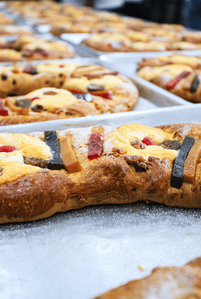 Eduardo García, panadero de esta pastelería desde hace 14 años, contó un poco sobre la tradición de esta rosca, la cual es elaborada con una masa especial, rellena de frutos secos, manzana y nueces, y por supuesto, adornada con su pasticeta, cerezas, higos y ate de membrillo que, recordó Eduardo, simbolizan las joyas y las esmeraldas que Melchor, Gaspar y Baltazar llevaron al Niño Jesús como parte de los obsequios hechos en su visita.