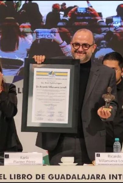 La ceremonia contó con la proyección de un video con palabras de varios personajes cercanos a quien fuera rector de la UdeG desde 2019 hasta el pasado mes de marzo, destacando las voces de Alfredo Peña, Jaime Andrade Villanueva, Trinidad Padilla López —actual presidente de la FIL—, la actual rectora de la UdeG, Karla Planter, así como las hijas y familiares de Villanueva Lomelí.