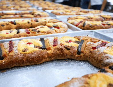 Eduardo García, panadero de esta pastelería desde hace 14 años, contó un poco sobre la tradición de esta rosca, la cual es elaborada con una masa especial, rellena de frutos secos, manzana y nueces, y por supuesto, adornada con su pasticeta, cerezas, higos y ate de membrillo que, recordó Eduardo, simbolizan las joyas y las esmeraldas que Melchor, Gaspar y Baltazar llevaron al Niño Jesús como parte de los obsequios hechos en su visita.